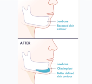 Implan dagu dimasukkan melalui sayatan kecil di bawah dagu, sehingga secara dramatis mengurangi kemungkinan terbentuknya bekas luka yang terlihat.