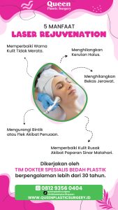 Queeners, Anda tidak perlu khawatir lagi untuk mengatasi permasalahan tersebut, karena di Klinik Kecantikan Queen Plastic Surgery memiliki Perawatan Laser Rejuvenation yang pengerjaan secara profesional yang dilakukan oleh dokter-dokter membuat hasil terlihat cerah dan awet muda.