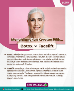 Queeners dapat melakukan konsultasi dengan Klinik Kecantikan Queen Plastic Surgery untuk mendapatkan solusi terkait menghilangkan kerutan pada wajah. Karena perawatan wajah akibat kerutan sangat membantu Queeners untuk mendapatkan hasil wajah yang glowing dan bebas kerutan dan tentunya pastikan bahwa Queeners melakukannya di klinik yang sudah resmi. Klinik Kecantikan Queen Plastic Surgery menjadi yang terbaik dan sangat berpengalaman dalam bedah plastik kosmetik selama puluhan tahun. Melakukan treatment dengan seorang ahli pun menjadi pertimbangan untuk melakukan treatment dalam waktu tertentu. Queeners akan mendapatkan hasil yang terbaik pada hasil wajah yang Queeners lakukan di Klinik Kecantikan Queen Plastic Surgery. Hubungi hotline di bawah ini dan konsultasikan masalah Queeners kepada Klinik Kecantikan Queen Plastic Surgery.