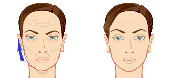 Facelift melibatkan penggunaan kulit berlebih dan pengencangan jaringan serta kulit di bagian bawah wajah dan leher untuk menciptakan kontur wajah yang lebih elegan.
